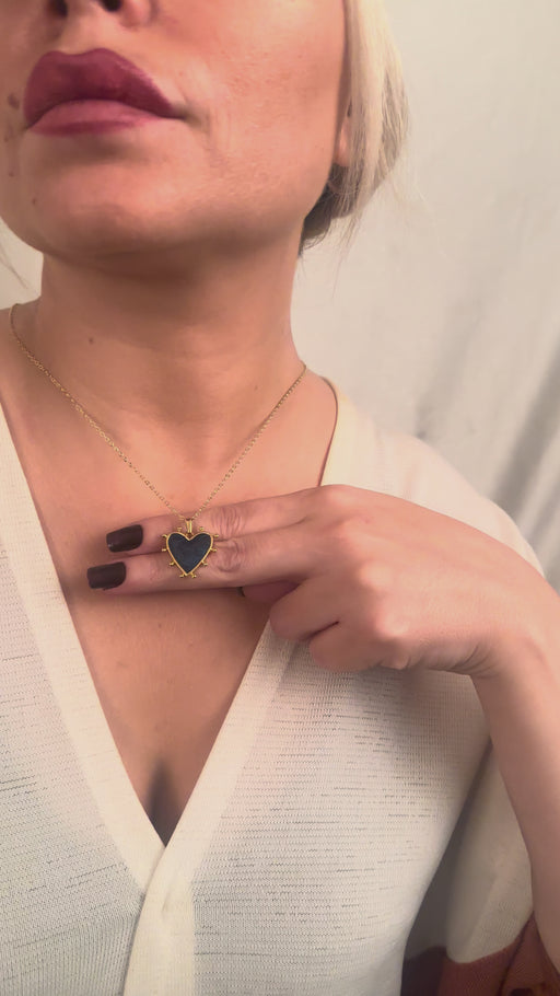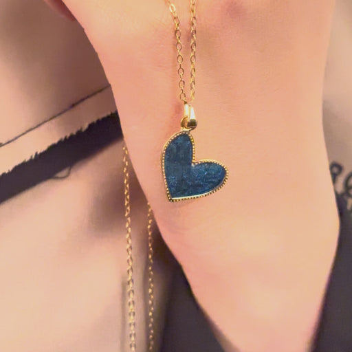 17'' +2'' 24k Shiny Gold Heart Charm Ready Necklace, Night Blue Enamel Heart Pendant Necklace, Dainty Necklace, DC192-2