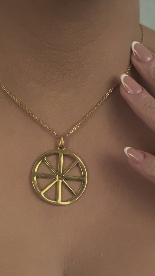 17'' +2'' 24k Shiny Gold Wheel Charm Ready Necklace, Vintage Wheel Pendant Necklace, DC191-12