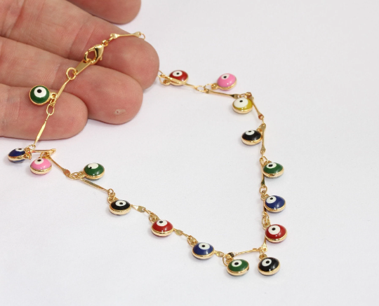 24k Shiny Gold Evil Eye Bracelet, Beaded Evil Eye Bracelet, CHK514-2