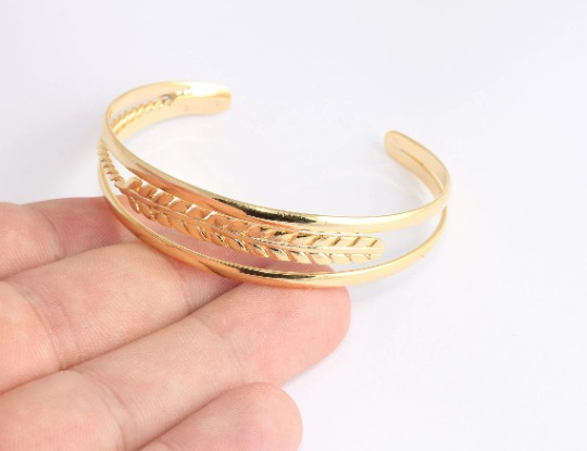 24k Shiny Gold Bracelet Cuff Triple Leaf Bracelet Bangle CHK680-1