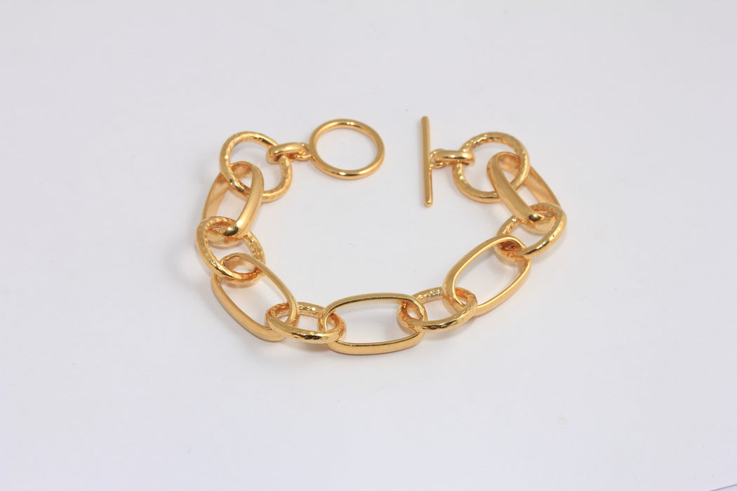 24k Shiny Gold Chain Round Link Bracelet, Oval Link Bracelet, BXB167-3