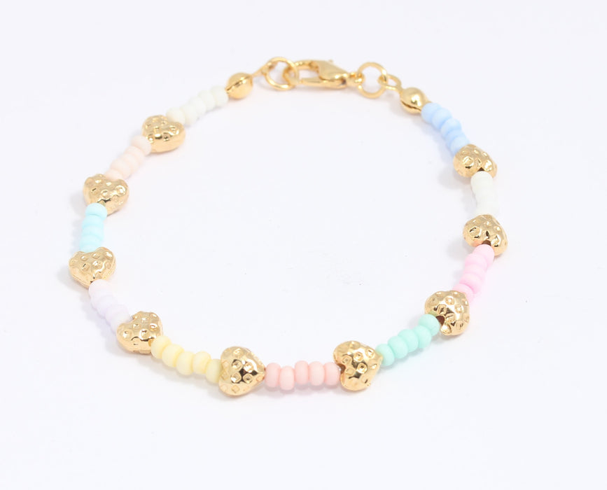 24k Shiny Gold Cute Beaded Bracelet, Colorful Elastic Ball Bracelet, BLK7-1