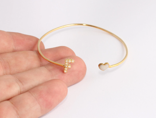 24k Shiny Gold Initial Bracelet Heart Bracelet Bangle Gold CHK91
