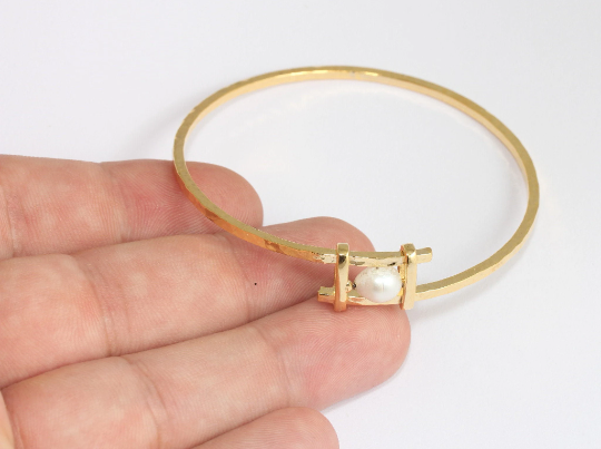 24k Shiny Gold Pearl Bracelet Cuff Round Wire Bracelet CHK619