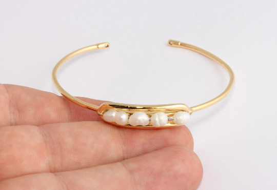24k Shiny Gold Pearl Bracelet Cuff Stacking Wire Gold CHK632