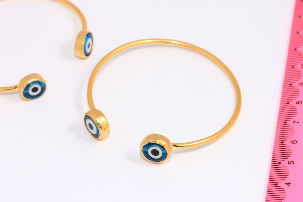 24k Shiny Gold Wire Bracelet, Enamel Evil Eye Bracelet Cuff, BXB386-1