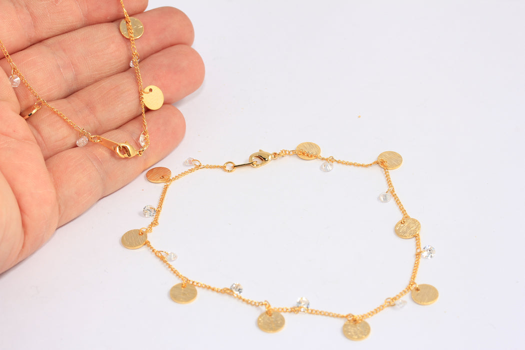 25mm 24k Shiny Gold Coin Anklet, Anklet Bracelet With Crystal Beads, CHK581-1