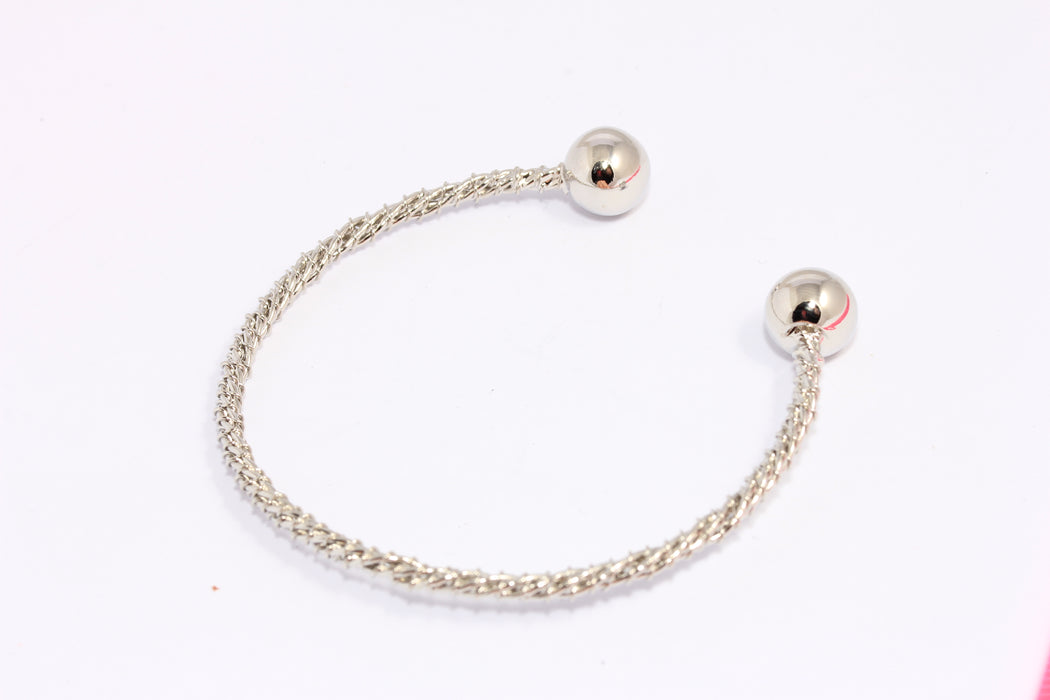 3,5mm Rhodium Plated Wire Bracelet, Silver Twisted Bracelet, CHK152-3