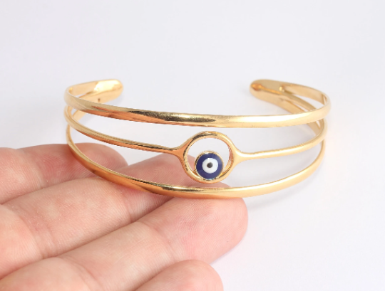 60mm 24k Shiny Gold Evil Eye Bracelets, Blue Evil Eye BXB374-2
