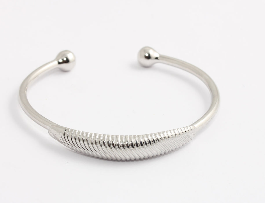 60mm Rhodium Plated Wire Bracelet, Silver Adjustable Bracelet, BXB404-2