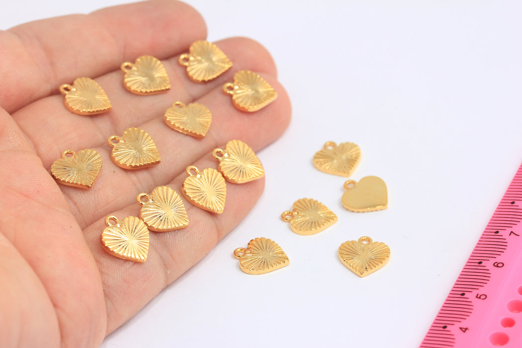 11x13mm 24k Shiny Gold Mini Heart Charm, Heart Bracelet Beads, MTE111