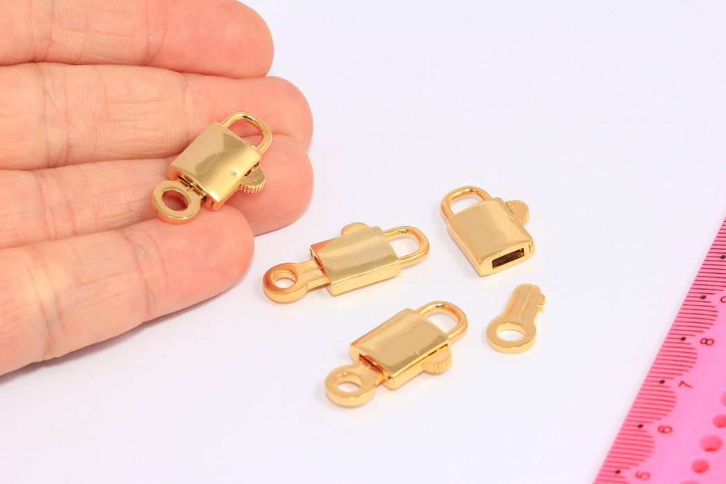 12x25mm 24k Shiny Gold Padlock Charms, Mini Padlock With Key, Love Lock, MLS788