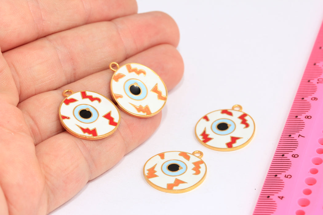 21mm 24k Shiny Gold Eye Pendant, Enamel Eye Medallion, HRN44-2