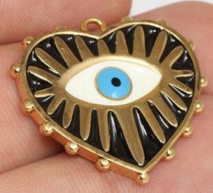 27x28mm 24k Shiny Gold Heart Charms, Black Enamel MLS969