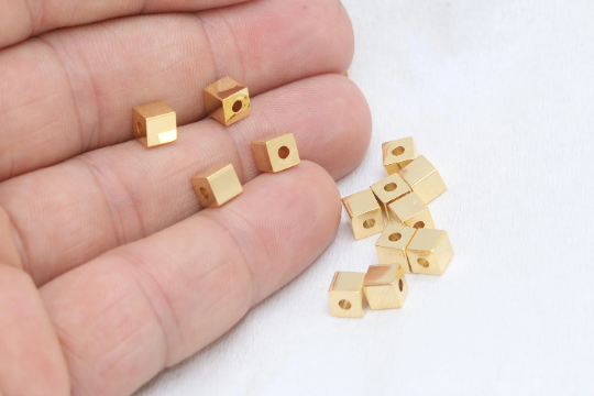 5mm 24k Shiny Gold Cube Beads, Spacer Beads, Bracelet Beads, BRT761