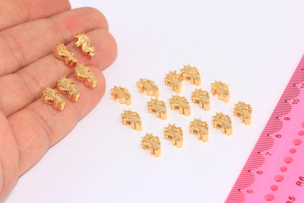 7,5x11mm 24k Shiny Gold Seahorse Charm, Cute Seahorse Beads, SLM68