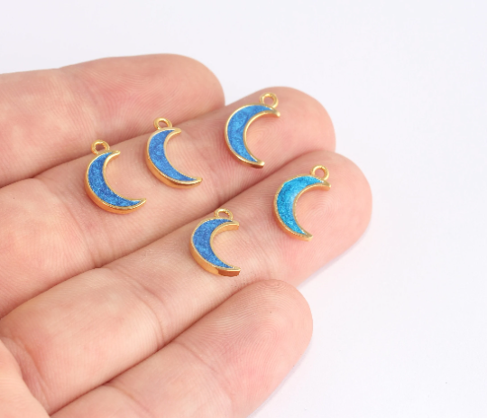 8x14mm 24k Shiny Gold Moon Charms, Small Moon , MTE1430