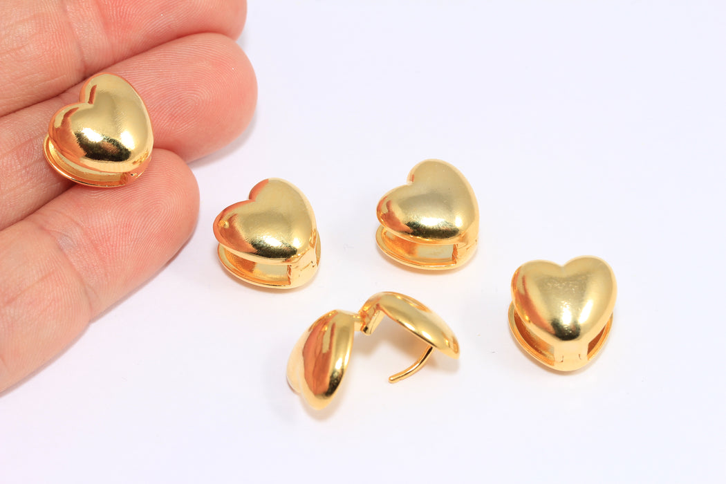 12x15mm 24k Shiny Gold Heart Earrings, Heart Earring Clasps, Puffed Heart Earrings, TBP39