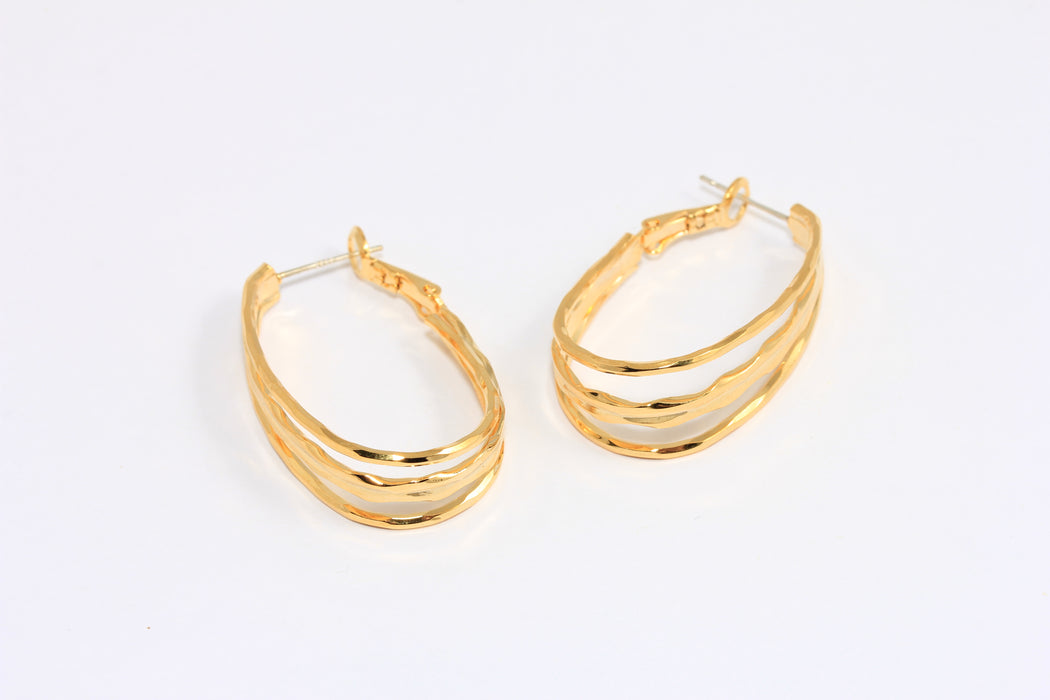 22x35mm 24k Shiny Gold Drop Earring Hoops, Teardrop Earrings, Triple Wire Earrings, ROSE192