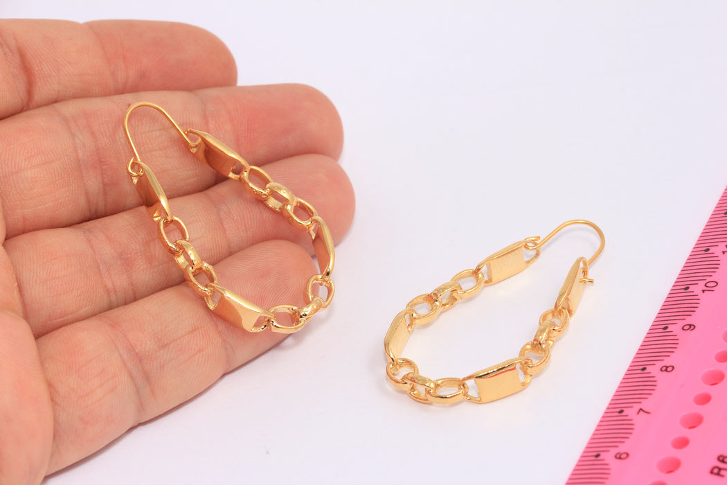 27x38mm 24k Shiny Gold Drop Earrings, Chain Link Style Earrings, SLM38-2