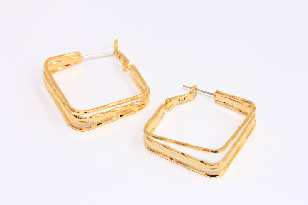 30mm 24k Shiny Gold Earring Hoops, Handmade Earring, Square Hoops, Triple Wire Earrings, AE161