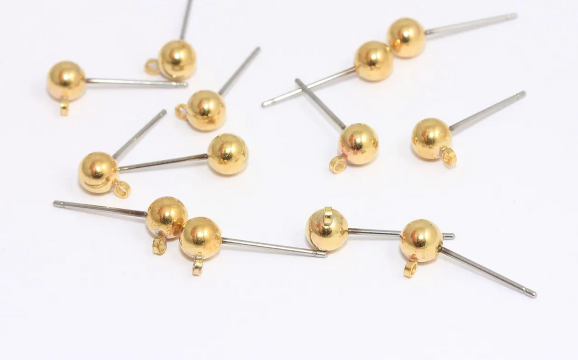 5mm Stainless Steel Ball Ear Posts, Ball Stud Earrings With Loop, Ball Earrings, CMR34