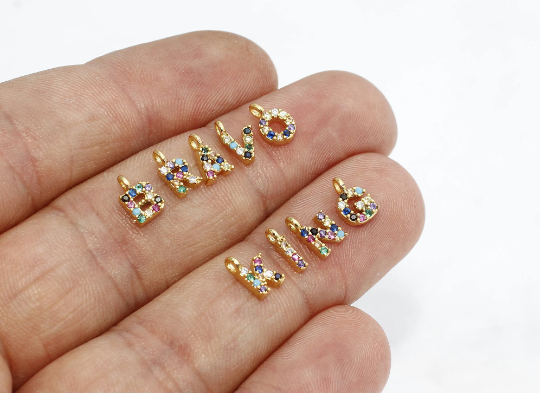 5x8mm 24k Shiny Gold Cz Letters, Cz Colorful Letter Charms, HRF30
