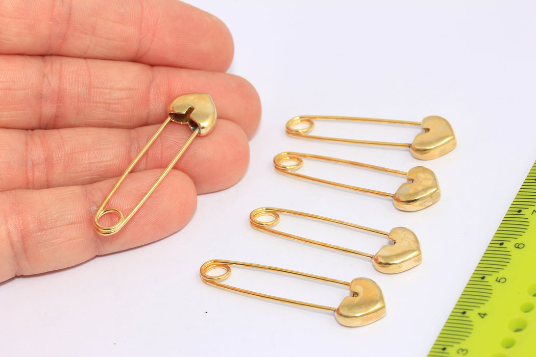 12x42mm Raw Brass Safety Pin Charm, Heart Safety Pin, CHK117-2