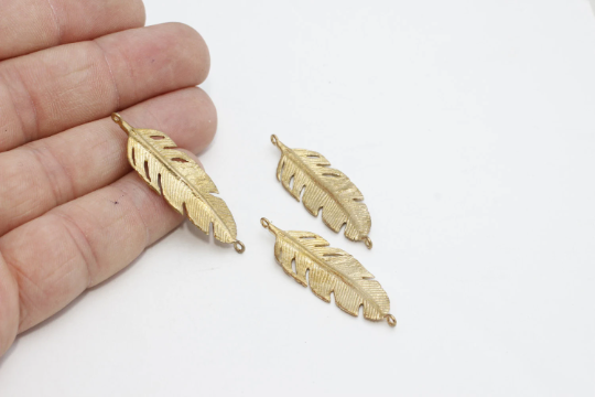 14x43mm Raw Brass Leaf Charms, Bracelet Connector, SOM91