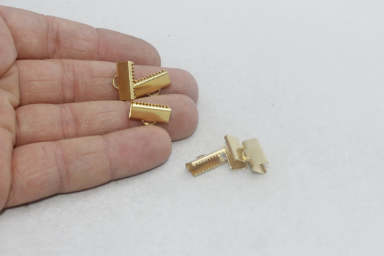 15mm Raw Brass Ribbon Crimps, Cord End, Fasteners , SOM183