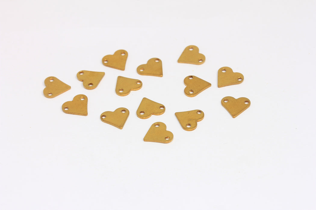 9mm Raw Brass Heart Charms, Two Hole Heart Beads, Heart Blank Disc, Connector Charms, FNL63