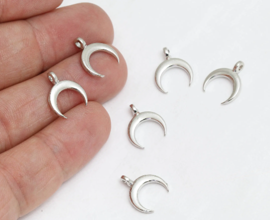 13x15mm Rhodium Plated Horn Charm, Horn Pendant, BRT564
