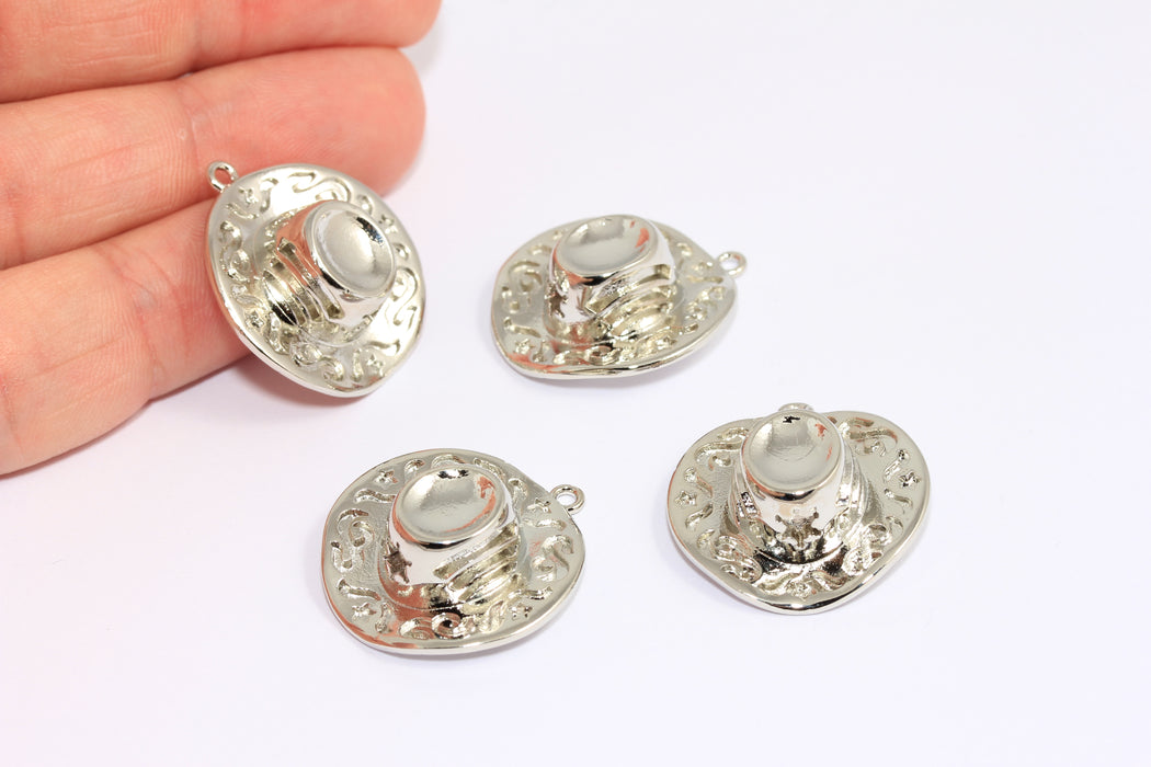 24x25mm Rhodium Plated Cowboy Charms, Silver Cowboy Hat Charms, BXB257-7