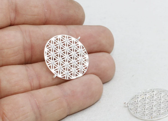 25mm Silver Charms, White Stone Charm, CZ Flower of Life, ZRCN132
