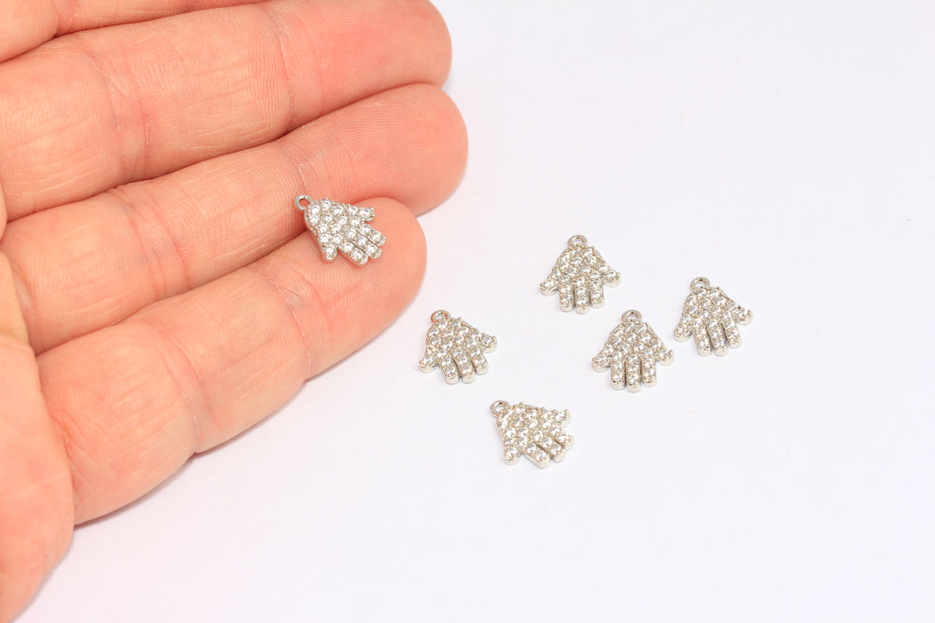 8x11mm Rhodium Plated Hamsa Charm, CZ Hamsa Bracelet Beads, CHK337-8