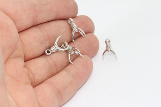 11x16mm Rhodium Plated Claw Charms, Claw Pendant, Bird MTE435