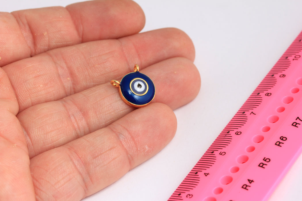 13x14mm 24k Shiny Gold Evil Eye Pendant, Evil Eye Necklace, Navy Blue Enamel Round Pendant, Pendant Necklace, Dainty Pendant, ROSE92-2
