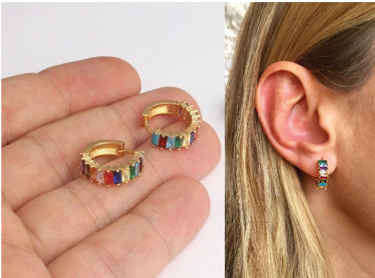 18mm 24k Shiny Gold Rainbow Pave Earrings, Dainty , Gold BRT871