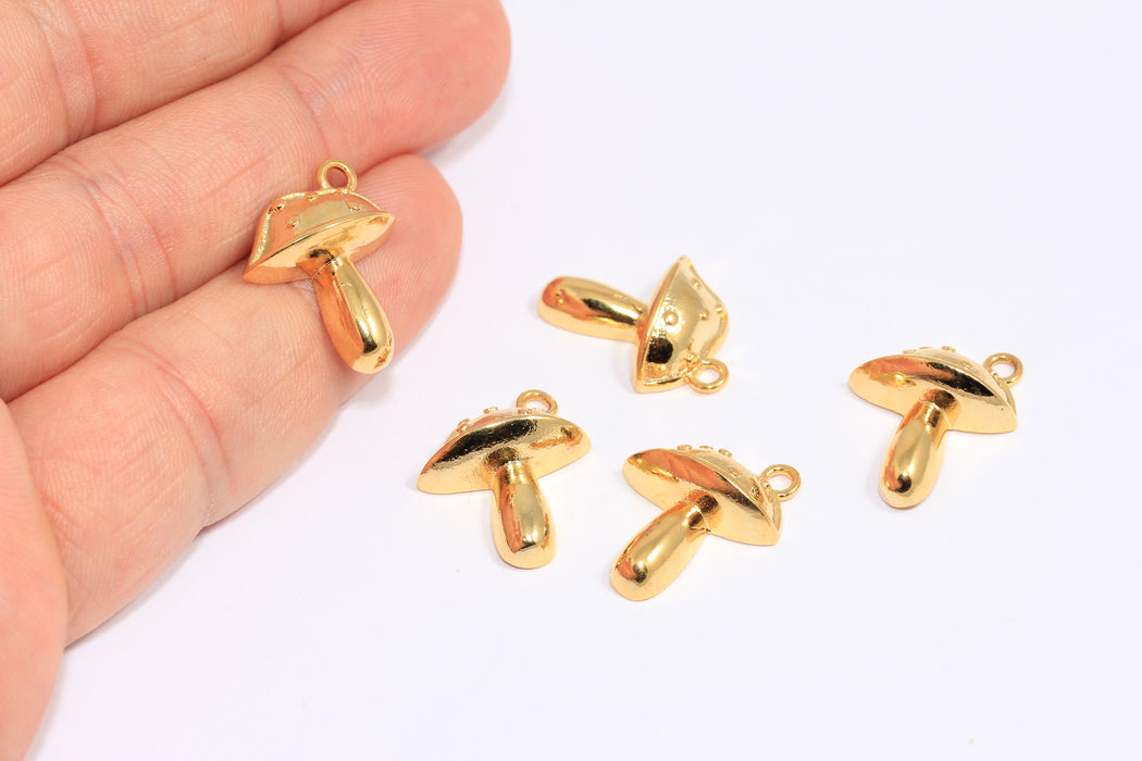 16x20mm 24k Shiny Gold Mushroom Charms, Mushroom Beads, SLM16