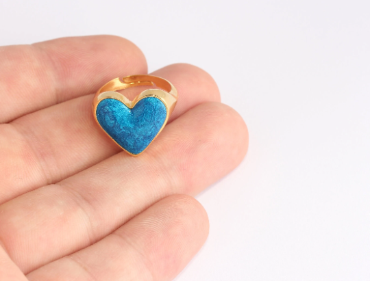 17-18mm 24k Shiny Gold Heart Rings, Enamel Heart Ring, SLM707