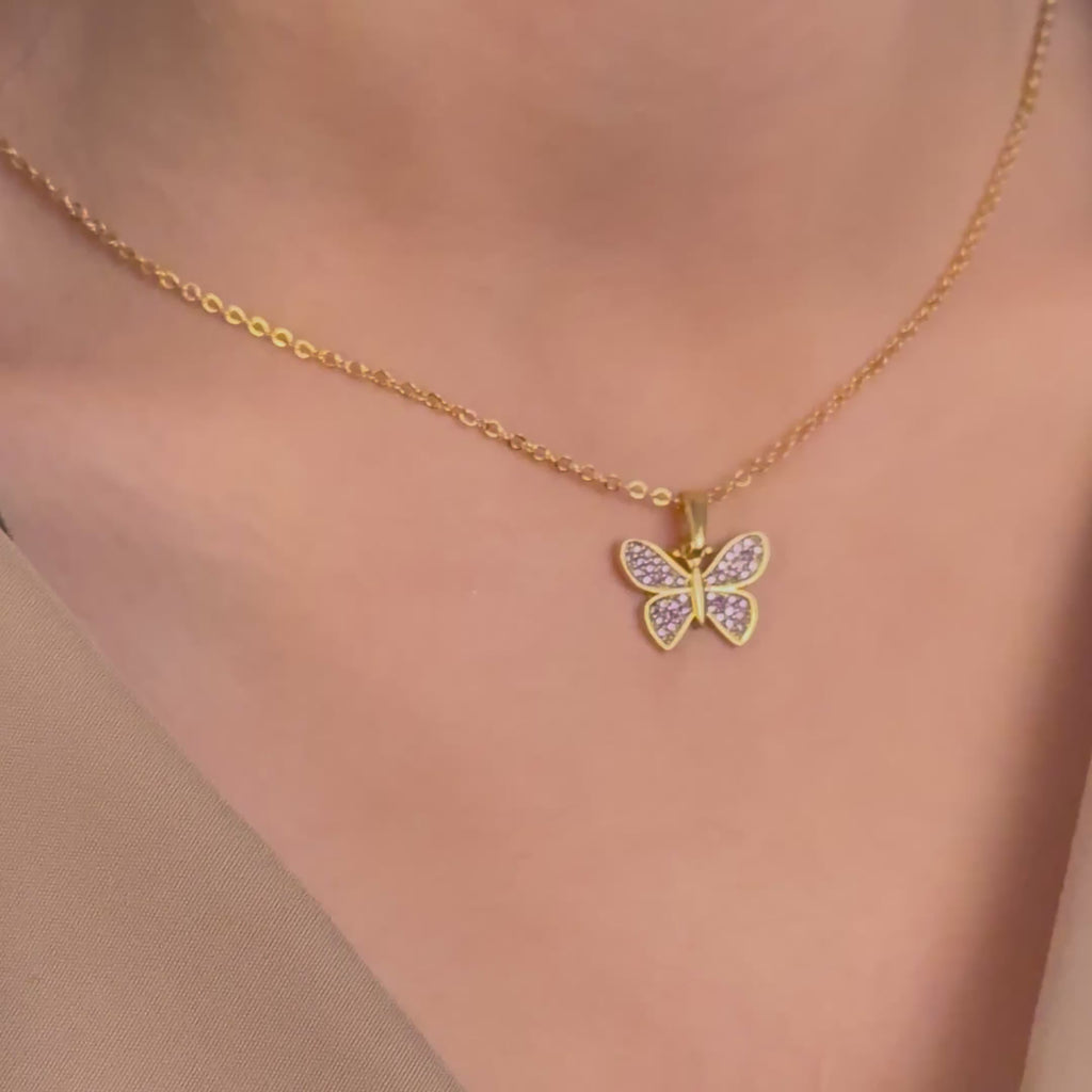 17'' +2'' 24k Shiny Gold CZ Butterfly Ready Necklace, Micro Pave Butterfly Pendant Necklace, DC192-12