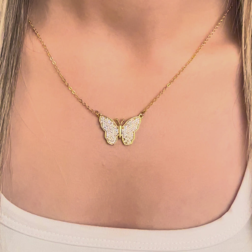 17'' +2'' 24k Shiny Gold CZ Butterfly Ready Necklace, Micro Pave Butterfly Pendant Necklace, DC21-5