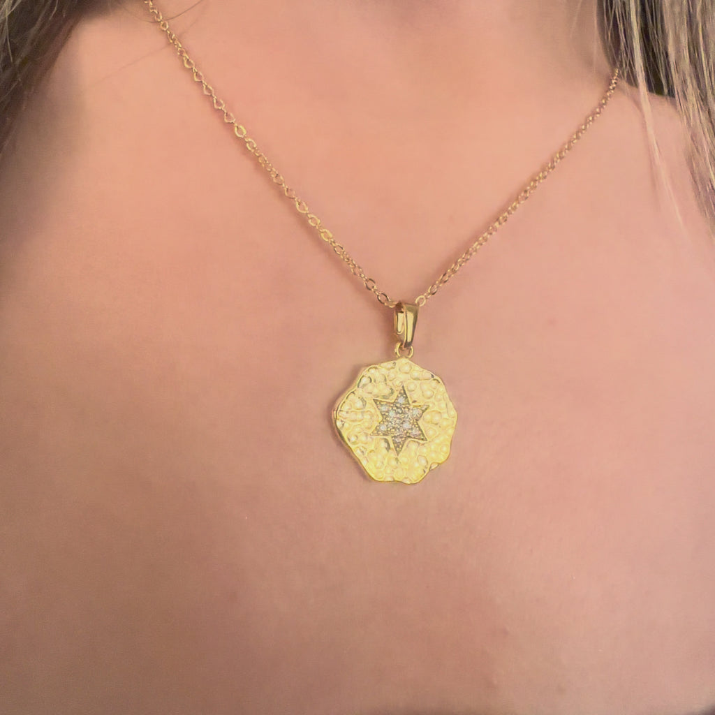 17'' +2'' 24k Shiny Gold Micro Pave Star Pendant Ready Necklace, CZ Star Medallion Necklace, DC21-35