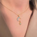 17'' +2'' 24k Shiny Gold Micro Pave Turquoise Stone Moon Charm Ready Necklace, Drop CZ Sun Charm Necklace, DC22-25