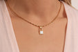 17'' +2'' 24k Shiny Gold Mini Lock Charm Ready Necklace, White Enamel Padlock Charm Necklace, DC21-14