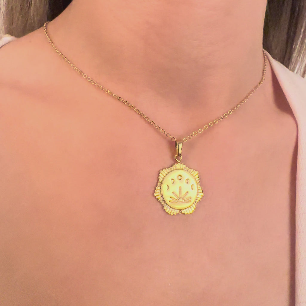 17'' +2'' 24k Shiny Gold Moon Phases Pendant Ready Necklace, Moon And Sun Medallion Necklace, DC21-22