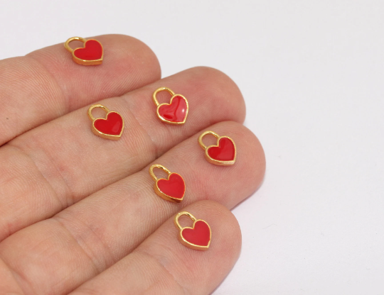 7x9mm 24k Shiny Gold Heart, Red Heart Pendant, Charms BRT150