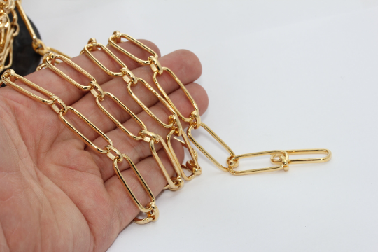 Catena a maglie in oro lucido 24k da 11x28 mm, fatta a mano, BXB229-1