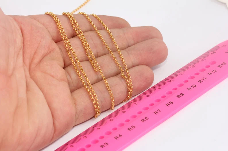 Catena Rolo in oro lucido 24k da 2 mm, catena saldata in oro, BXB67