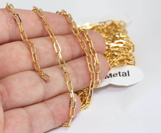 Catena a maglie in oro lucido 24k da 3,5x7 mm, catena a barra d'oro, catena a maglie CHK438